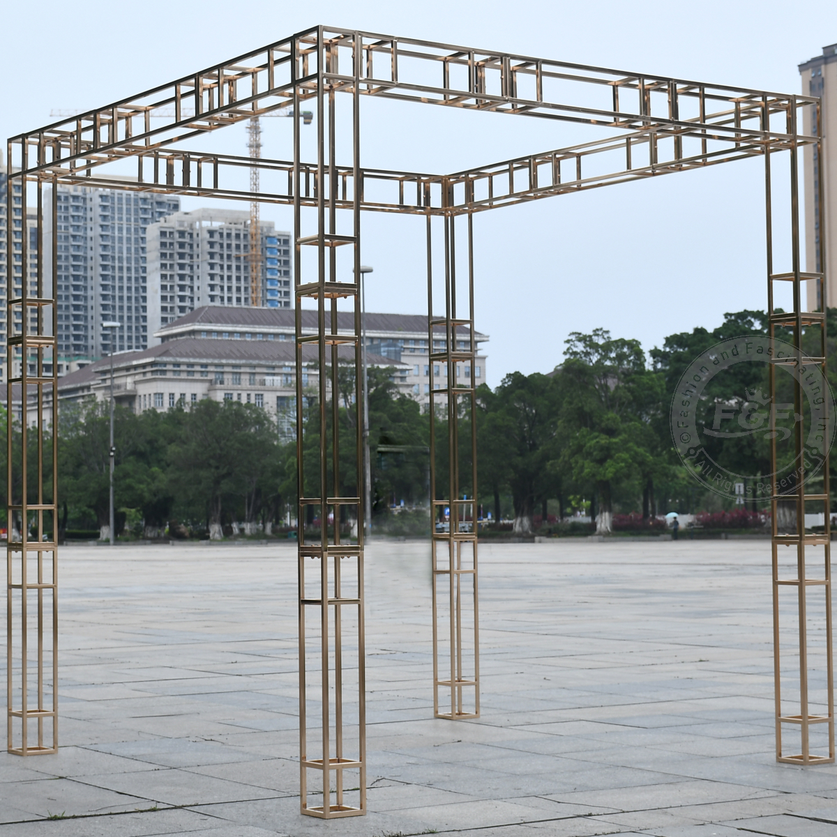 10x10Ft Heavy Duty Gold Plated 4 Poles Stable Square Screen Flower Stand Wedding Backdrop Frame