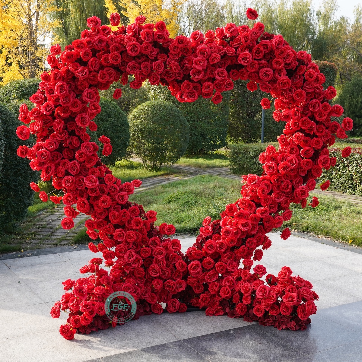8×8Ft Red Heart Shaped Floral Arch | 5D Luxury Wedding Backdrop