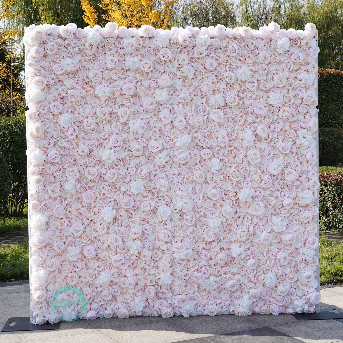 8×8Ft 3D Fabric Artificial Light Pink Flower Wall – Rolling Up Curtain Floral Wall With Storage Bag