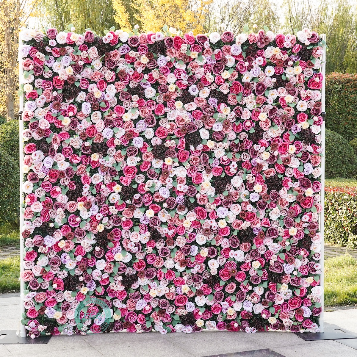 8×8Ft 3D Fabric Artificial Mixed Flower Wall – Roll-Up Curtain Floral Wall With Storage Bag