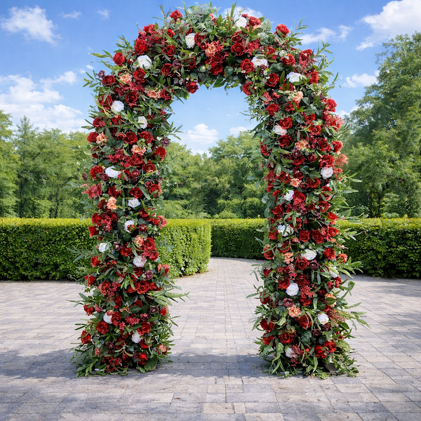 5FT x 8FT Open Wall Arch Frame with Artificial Red Flower Row,Artificial Flowers
