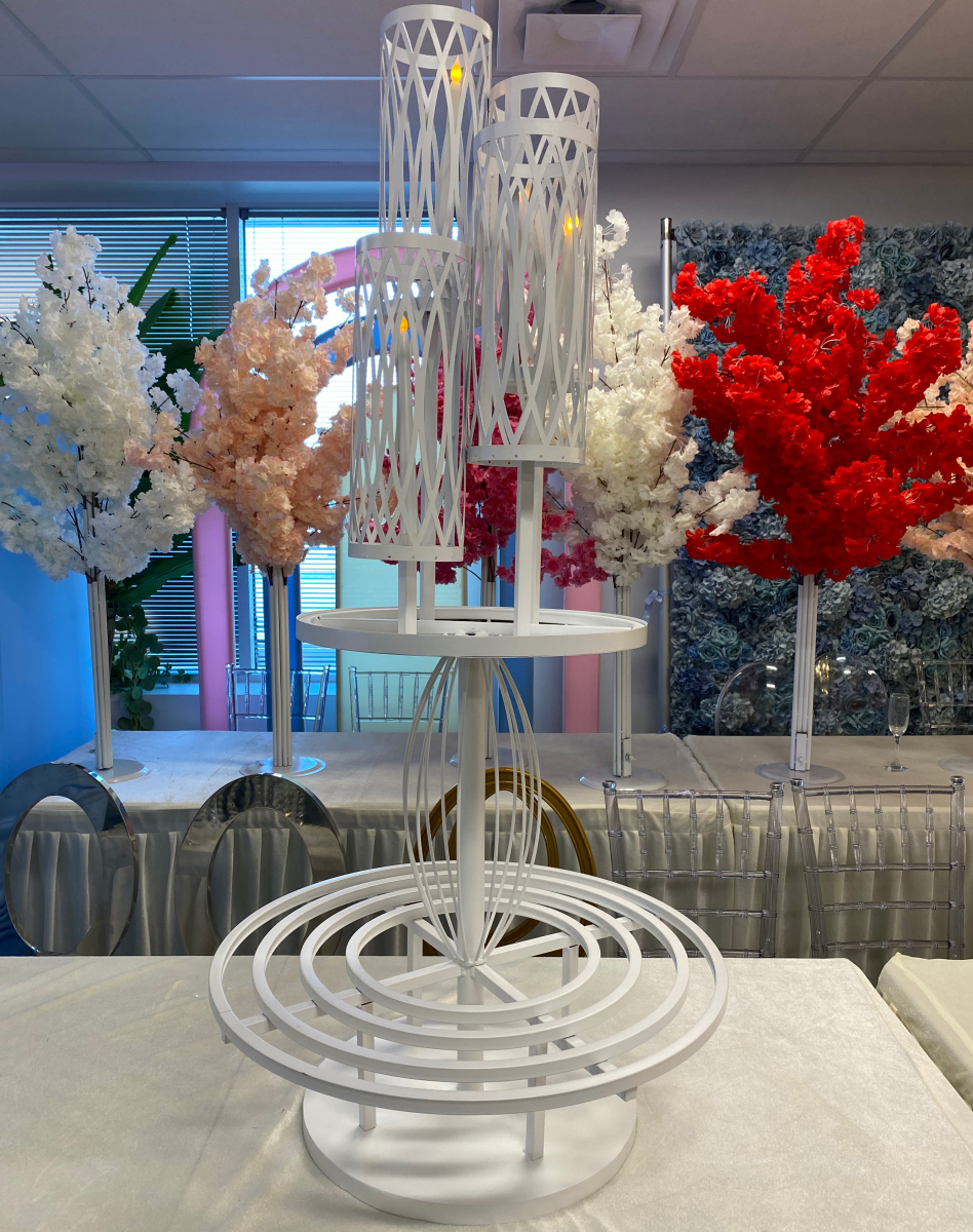 LOCALPICKUP | Glass Pendant 40″ Tall 5-Tier Silver Metal Centerpiece Stand-2 PACK