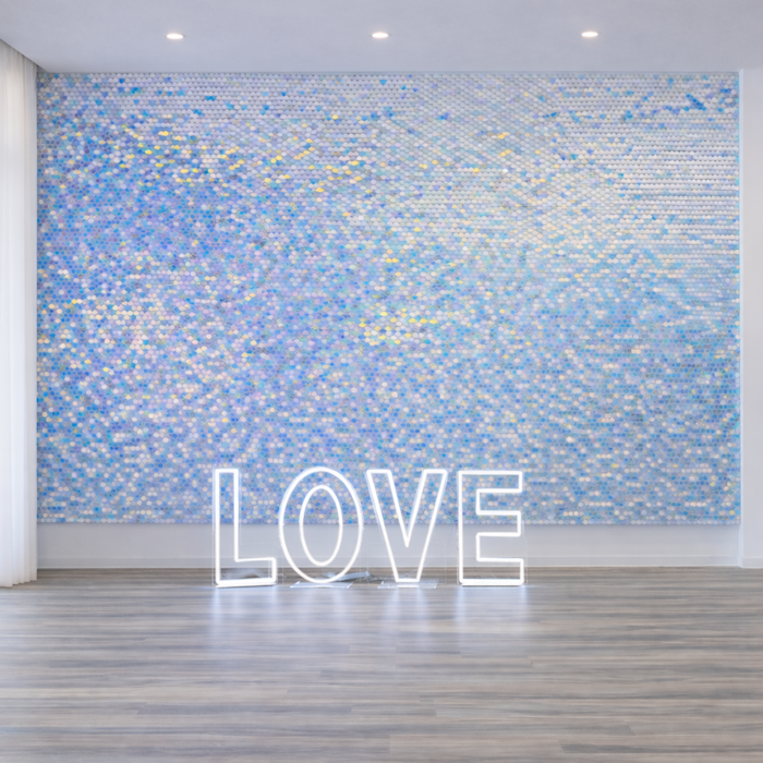 Blush Shimmer Wall Panels | Clear Self-Locking Sequin Backdrop