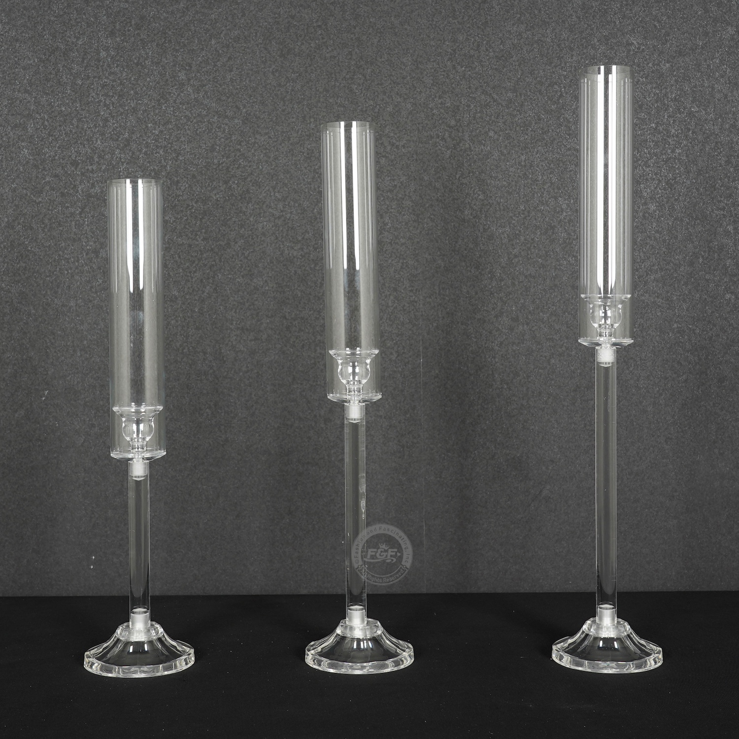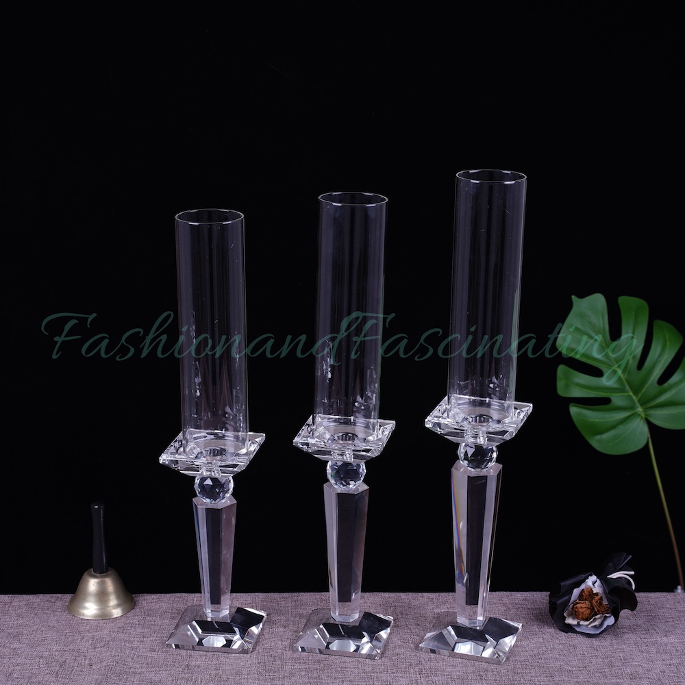 Set of 3 Clear Crystal Acrylic Candlesticks | 17.3″, 19.3″, 21.3″ Tall Wedding Table Centerpiece