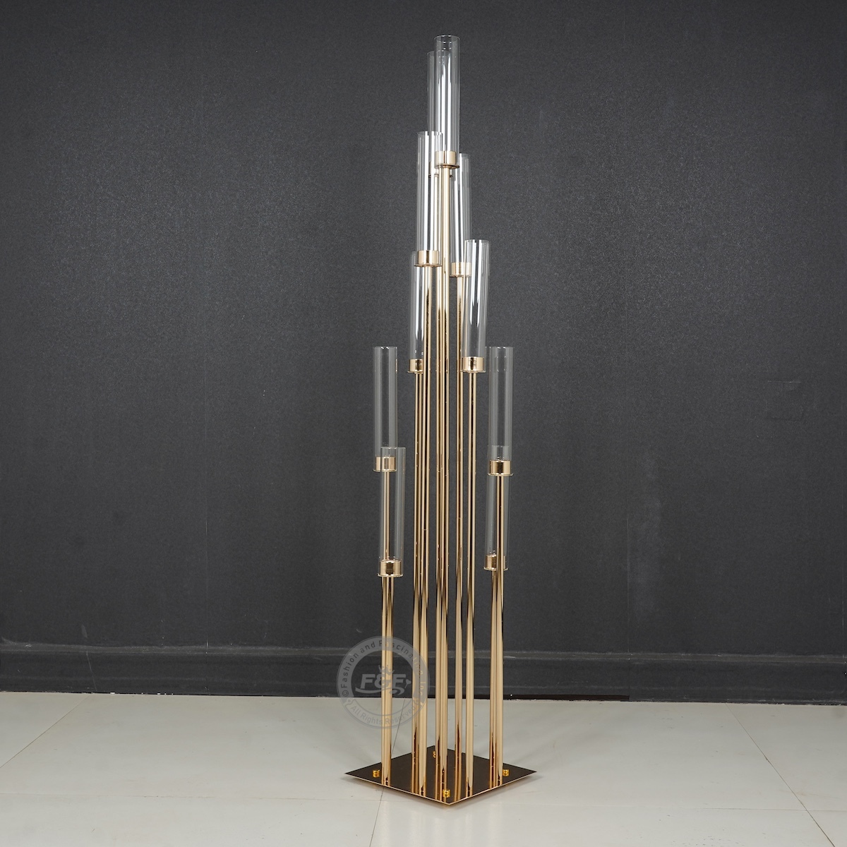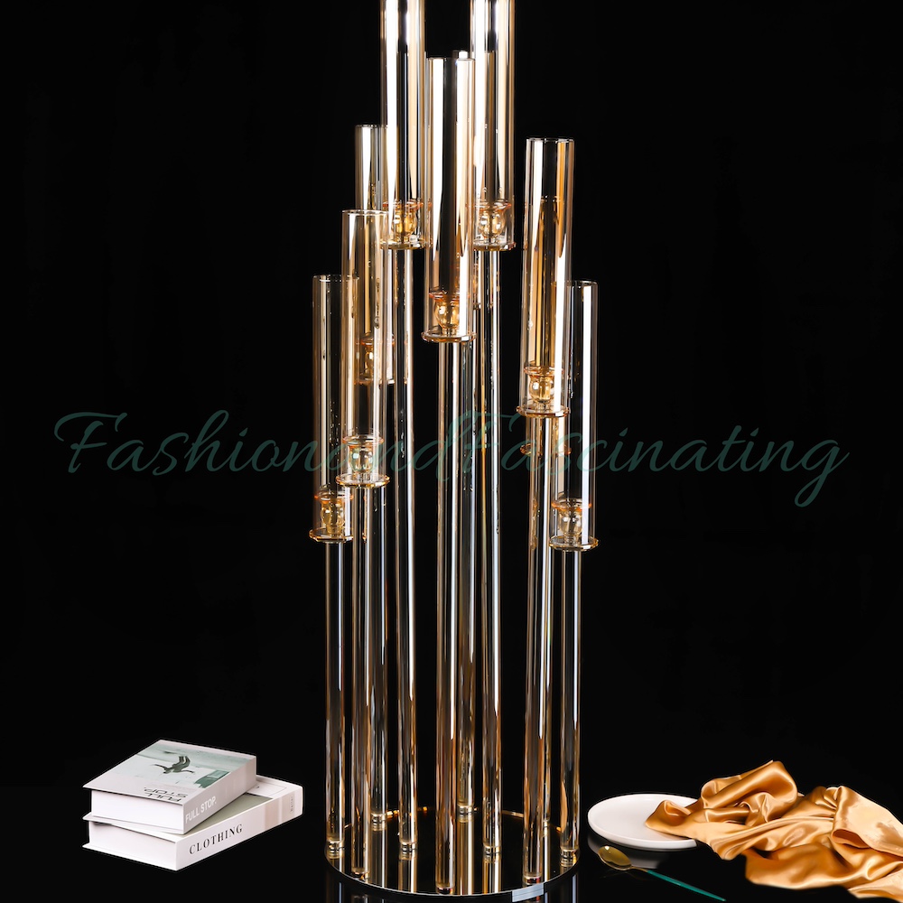 48” Tall 10 Arms Gold Crystal Glass Candle Holders ,Champagne Gold Candelabra