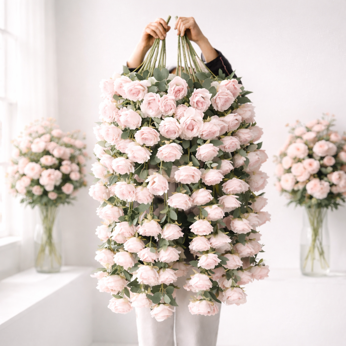Pink Artificial Silk Rose Bouquet 19″ Long Stem – Realistic Wedding & Home Decor