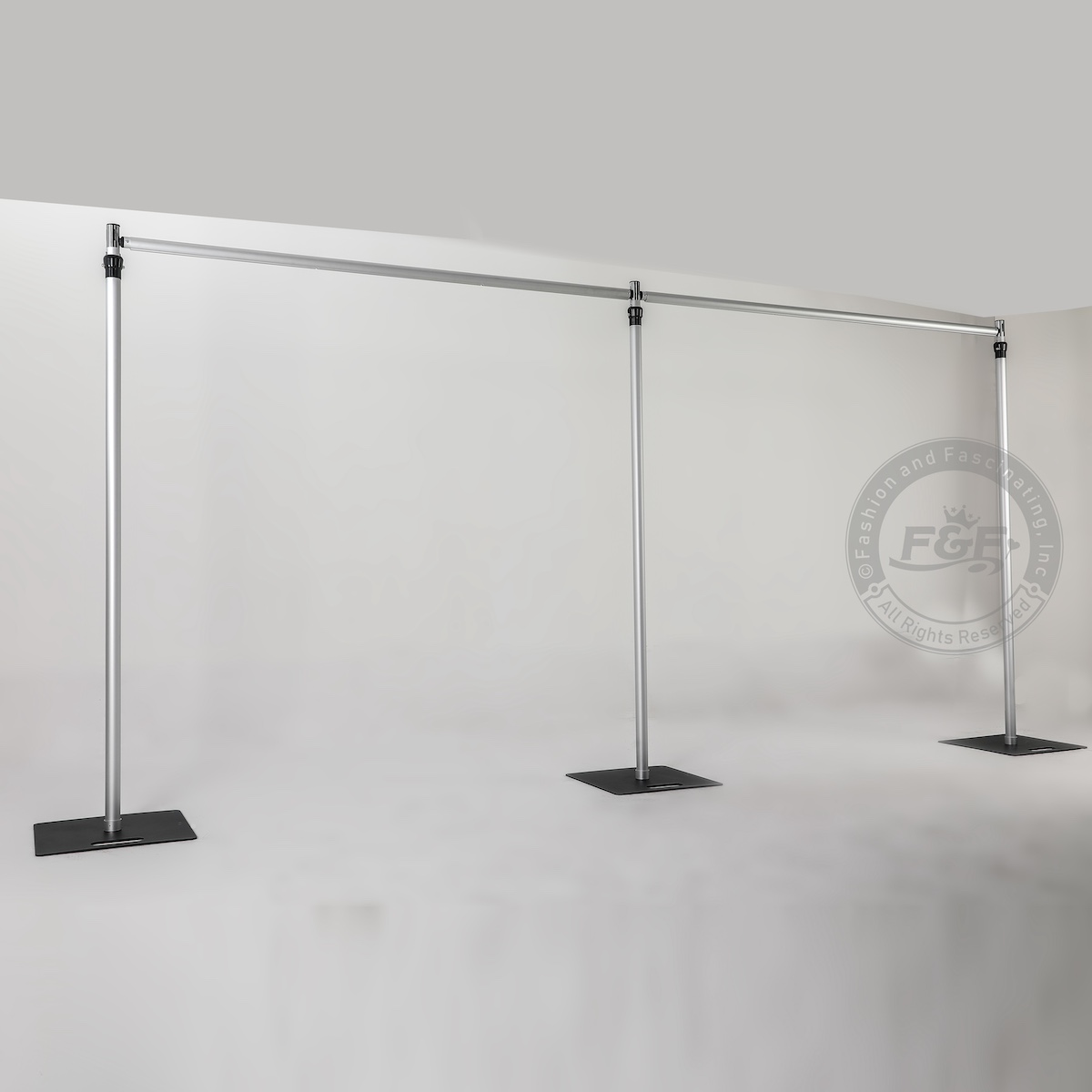 - Heavy-Duty Crossbars: The crossbars are made from anodized aluminum,designed for quick and easy width adjustments.They ensure that your drape is securely supported across the entire 20ft width,offering stability for even the heaviest fabrics.