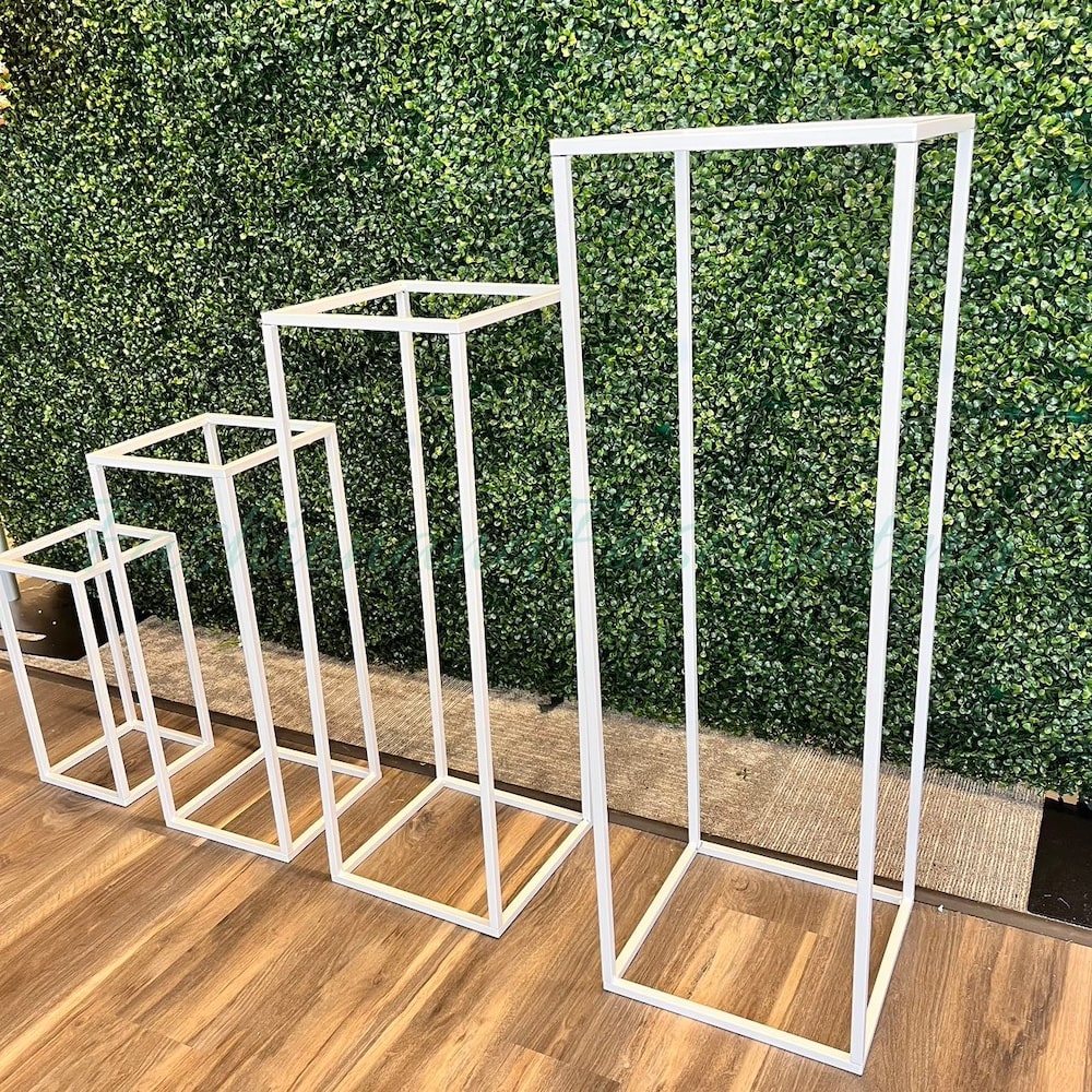 - Add a touch of sophistication to your living space with these white metal flower stands!