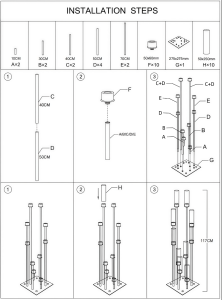 2* Stem 1: 4”/10CM 2*Stem 2: 12”/30CM 2*Stem 3: 19.7″/50CM 2*Stem4: 27.6″/70CM 2*Stem5:35.4’/90CM - Glass Shades: 10