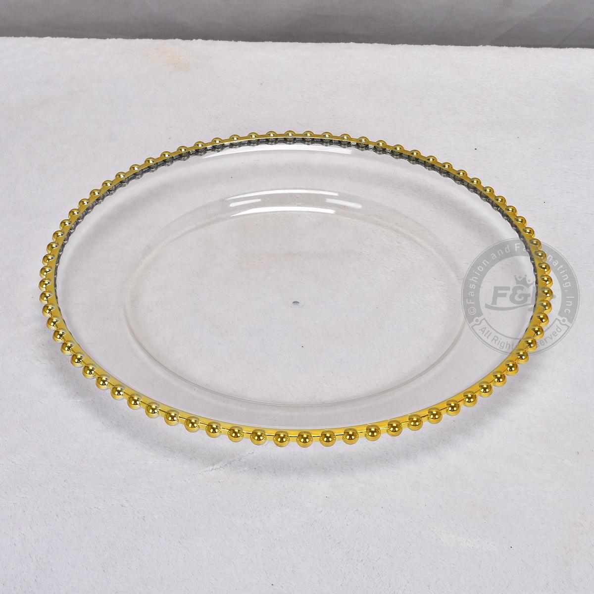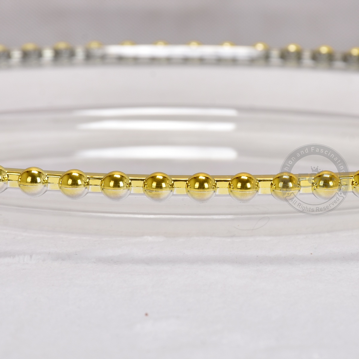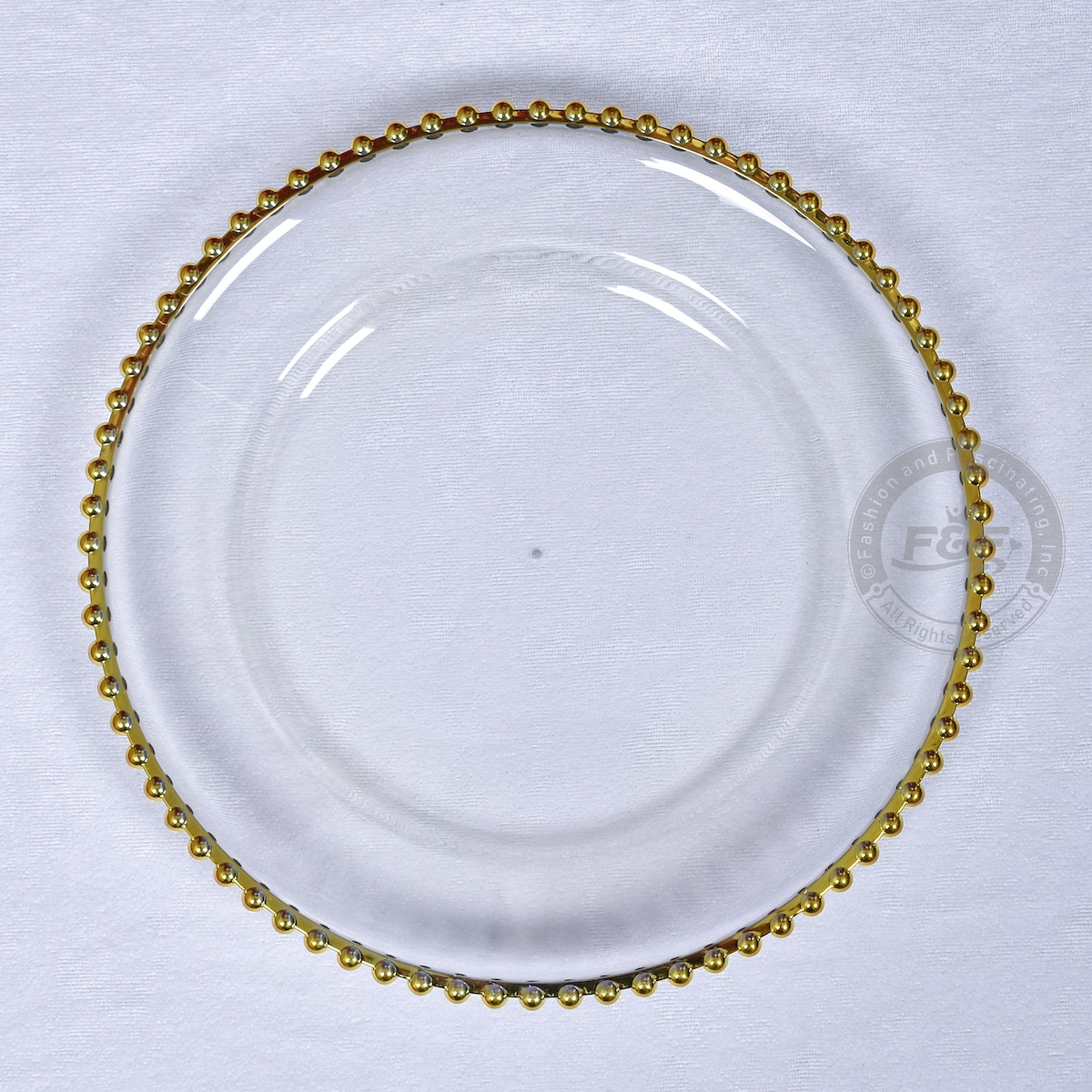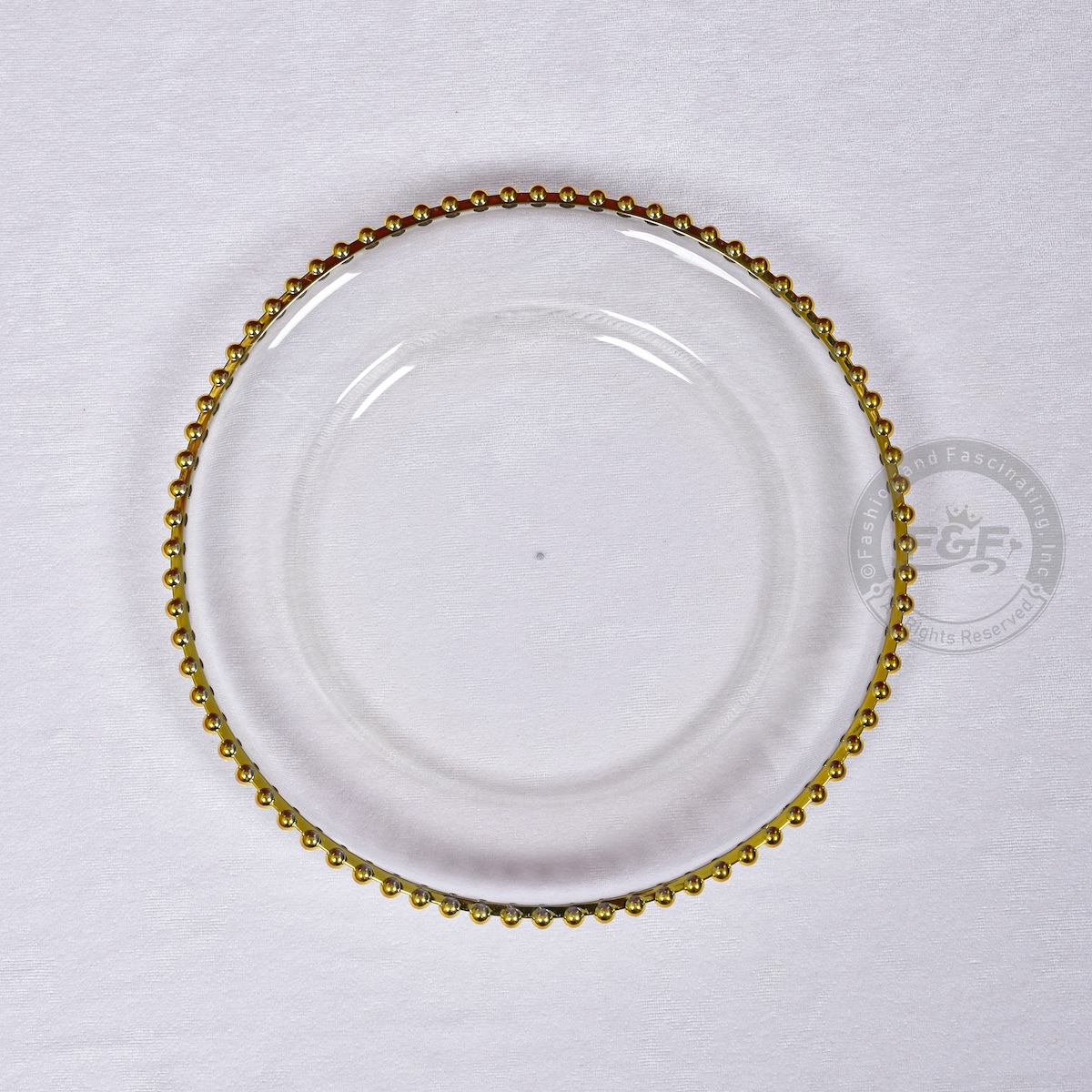 - Color: Clear with Gold Beaded Rim