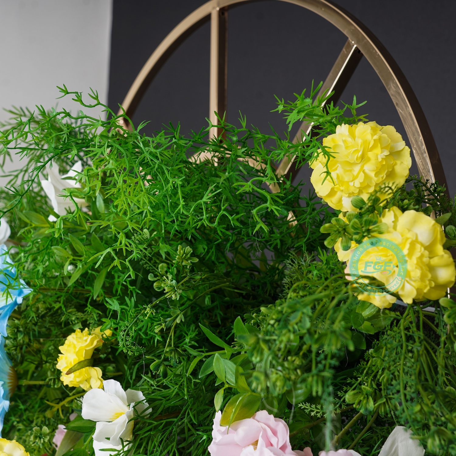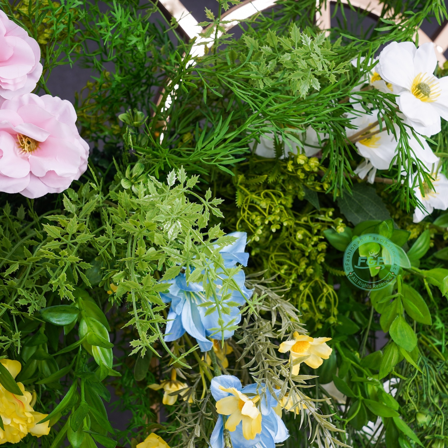 Create a stunning first impression with this luxurious artificial flower backdrop, featuring lush pink/yellow florals and vibrant green leaves in a full, natural arrangement. Perfect for wedding welcome areas, photo booths, ceremony entrances, or event backdrops.