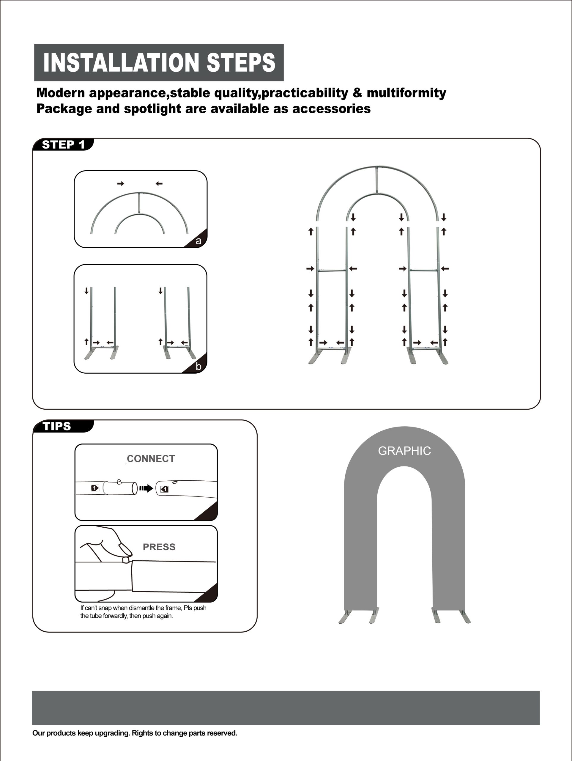 - Package includes:1.One sets arch 2Black storage bags 3.Instructions