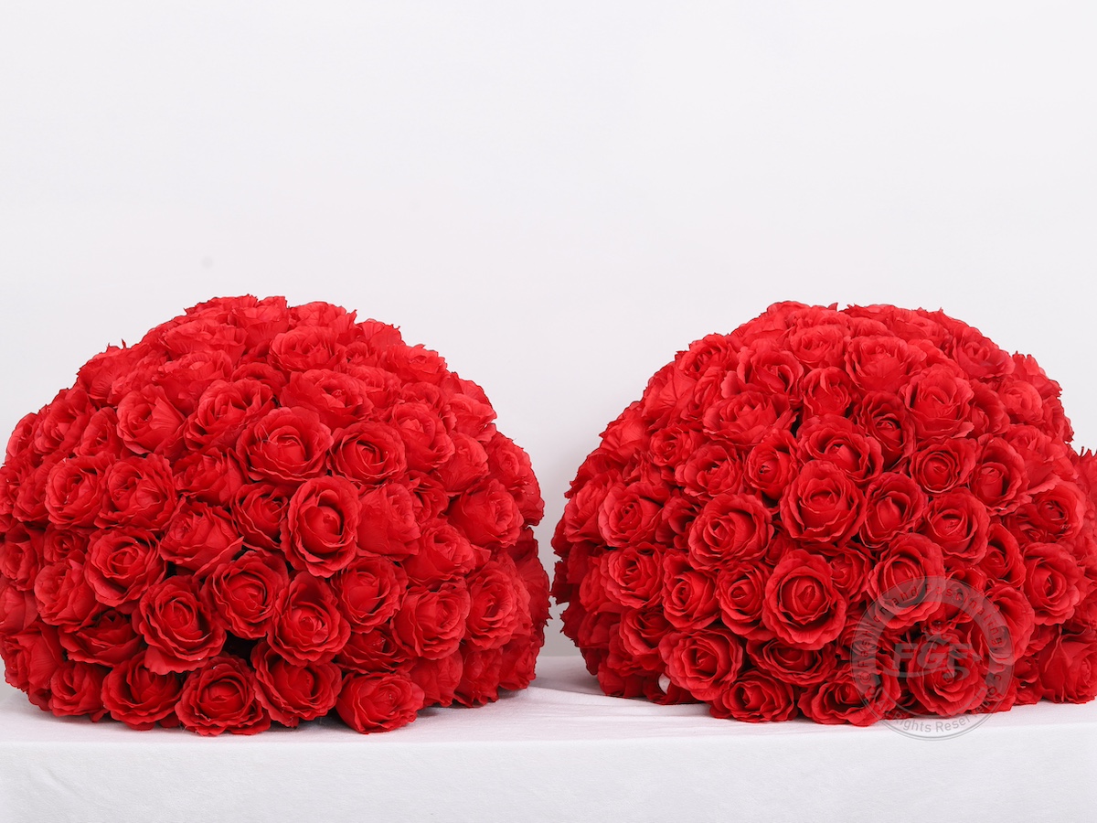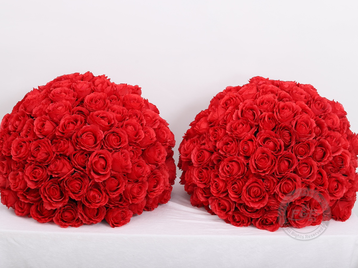 This set of 2 artificial red silk rose ball flower centerpieces is perfect for adding a touch of elegance to your wedding or event table decor. Each centerpiece measures 23.6″x17.7″ and features beautiful red silk roses arranged in a ball shape.Our artificial silk rose kissing flower balls are a great alternative to fresh flowers.Unlike real roses, these silk imitations will never wilt or fade, ensuring that your decorations remain fresh and radiant throughout your event.You can decorate your venue with peace of mind,knowing that these kissing flower balls will maintain their beauty from start to finish.