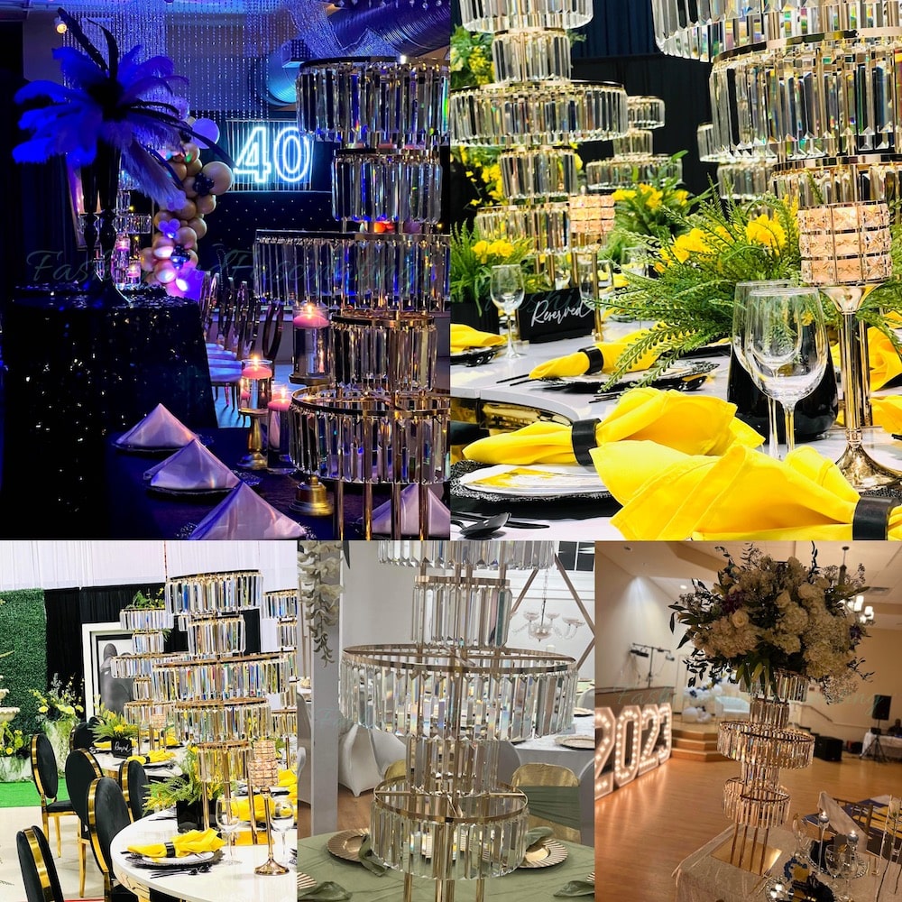 • Banquets and Galas: Ideal for upscale dinners and formal events,these stands create a stunning visual impact and serve as elegant table centerpieces.