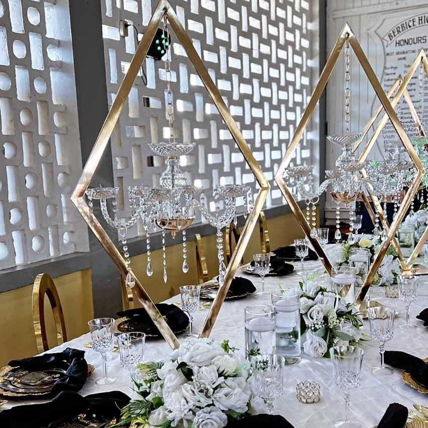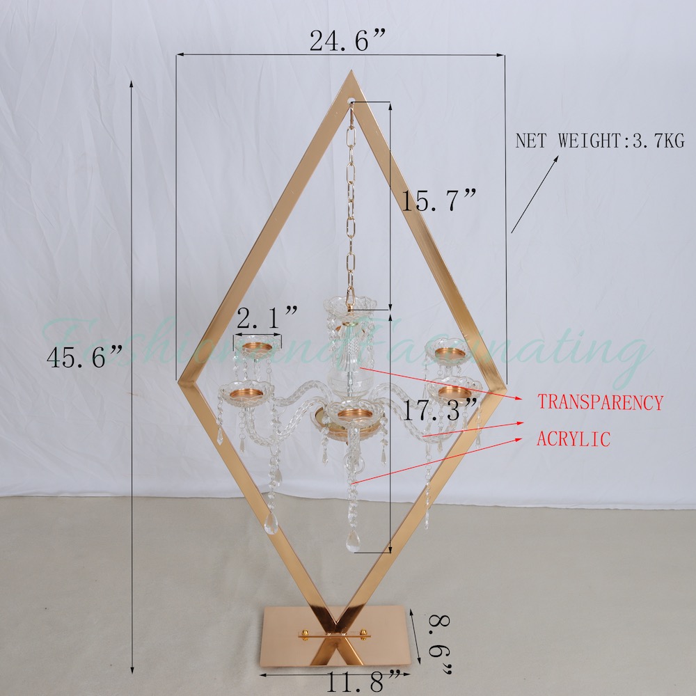 Create an unforgettable ambiance at your next event with our 2 PACK Gold Diamond Rhombus Metal Candle Holders.Standing tall at 45.6 inches,these candelabras are designed to impress and add a luxurious touch to your décor.With free shipping within the USA and quick dispatch,order today to ensure your centerpieces arrive in time for your special occasion!Please note the potential for minor dents during transit,and contact us if you have any questions.