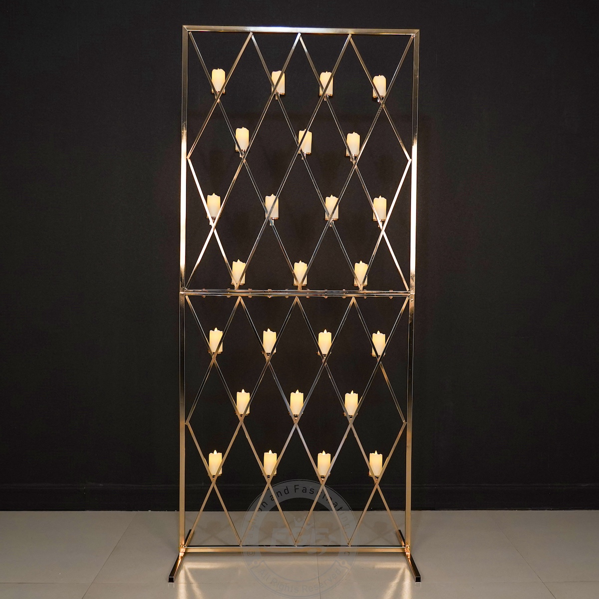y and stability.The strong frame ensures that it can securely hold candles, flowers,and other decorations without tipping or bending. - Versatile Grid Design: The rectangular grid design allows for creative decorating possibilities.You can easily attach candles,flowers,greenery,or drapes to create a customized backdropthat suits your event theme.The grid structure also provides ample support for hanging items,ensuring everything stays in place.