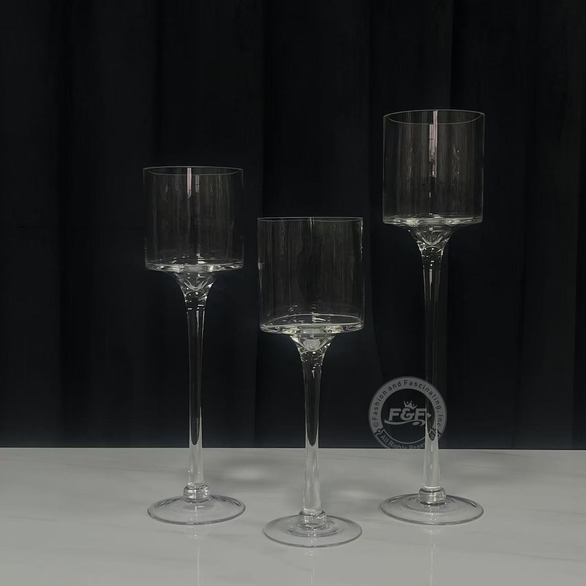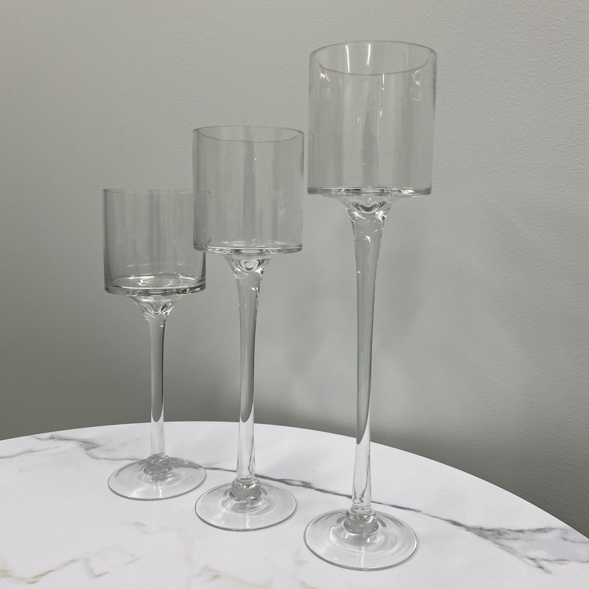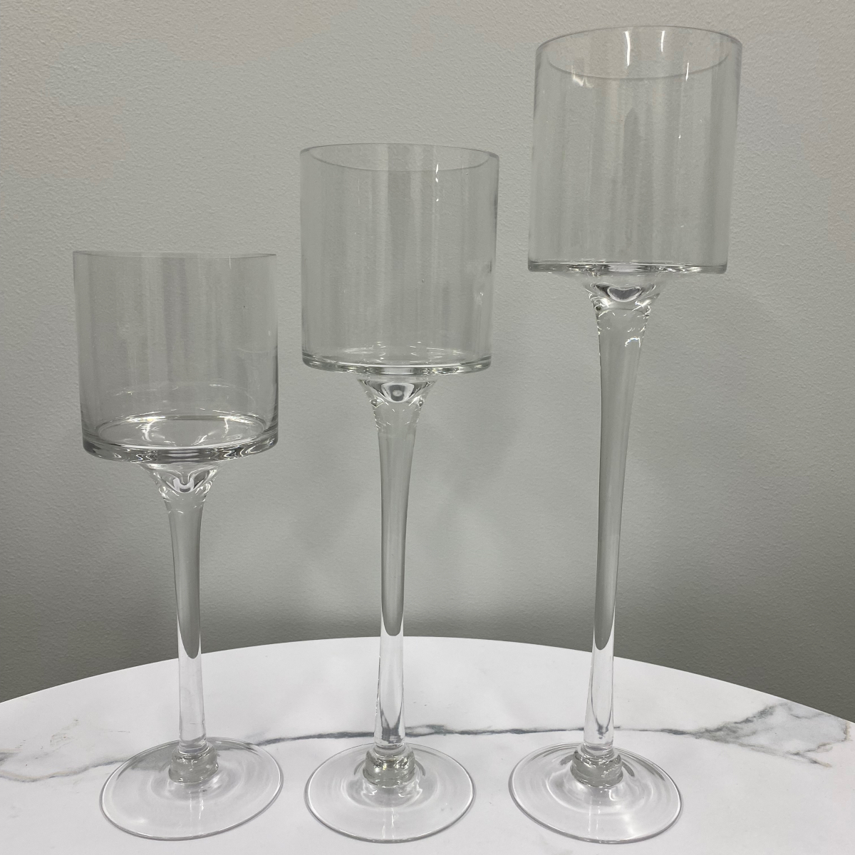 SET OF 12 | Glass Cylinder Candle Holders Long Stemmed Tealight Candlestick Holders Wedding Centerpieces-12″ 14″ 16″