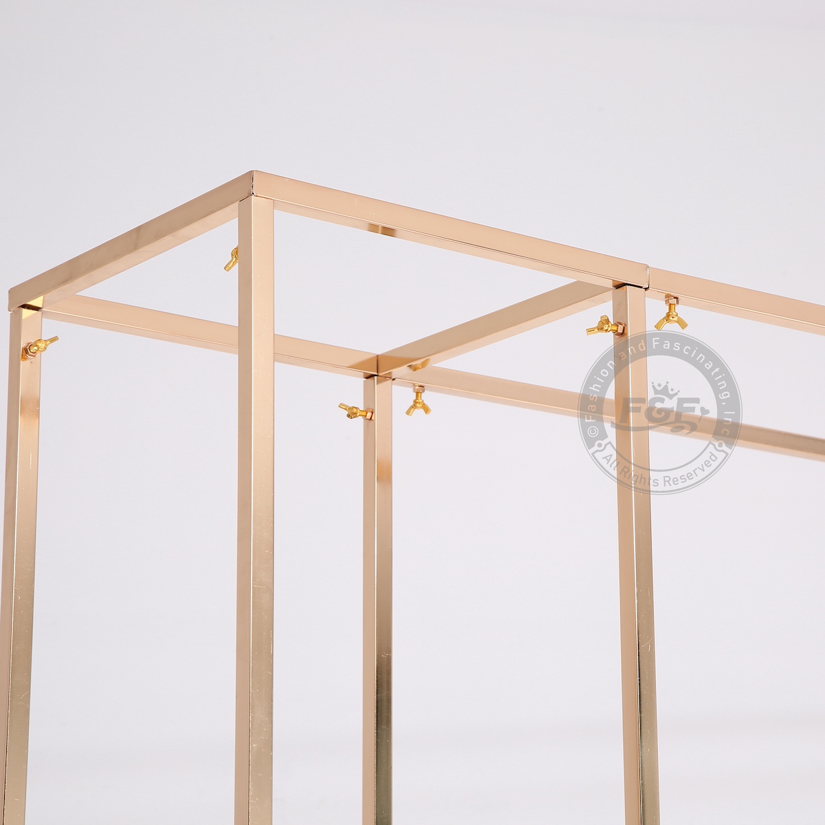 Add a touch of glamour to your special occasion with the 6.6ft x 6ft Shiny Gold Square Wedding Backdrop.This eye-catching wedding backdrop flower stand is designed to create a stunning focal point for weddings,engagements,and other celebrations, combining elegance with versatility.